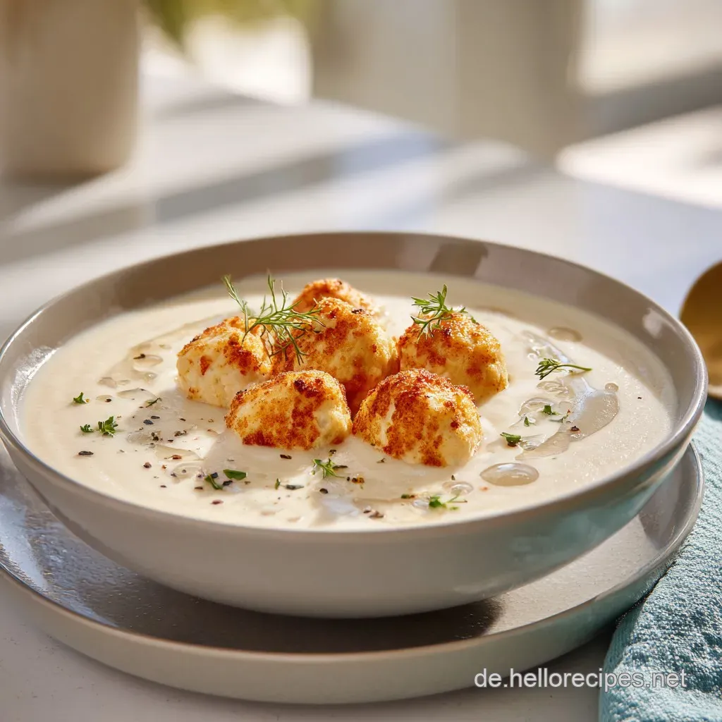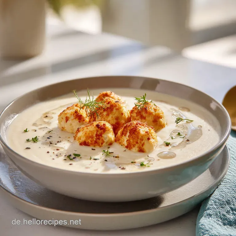 - Die würzige Käse Variante: Rührt am Ende 50 g geriebenen Cheddar oder Emmentaler unter die heiße Suppe. Der Käse schmilzt und gibt der Blumenkohlsuppe mit Hackbällchen eine cremige, fast fondue artige Note.