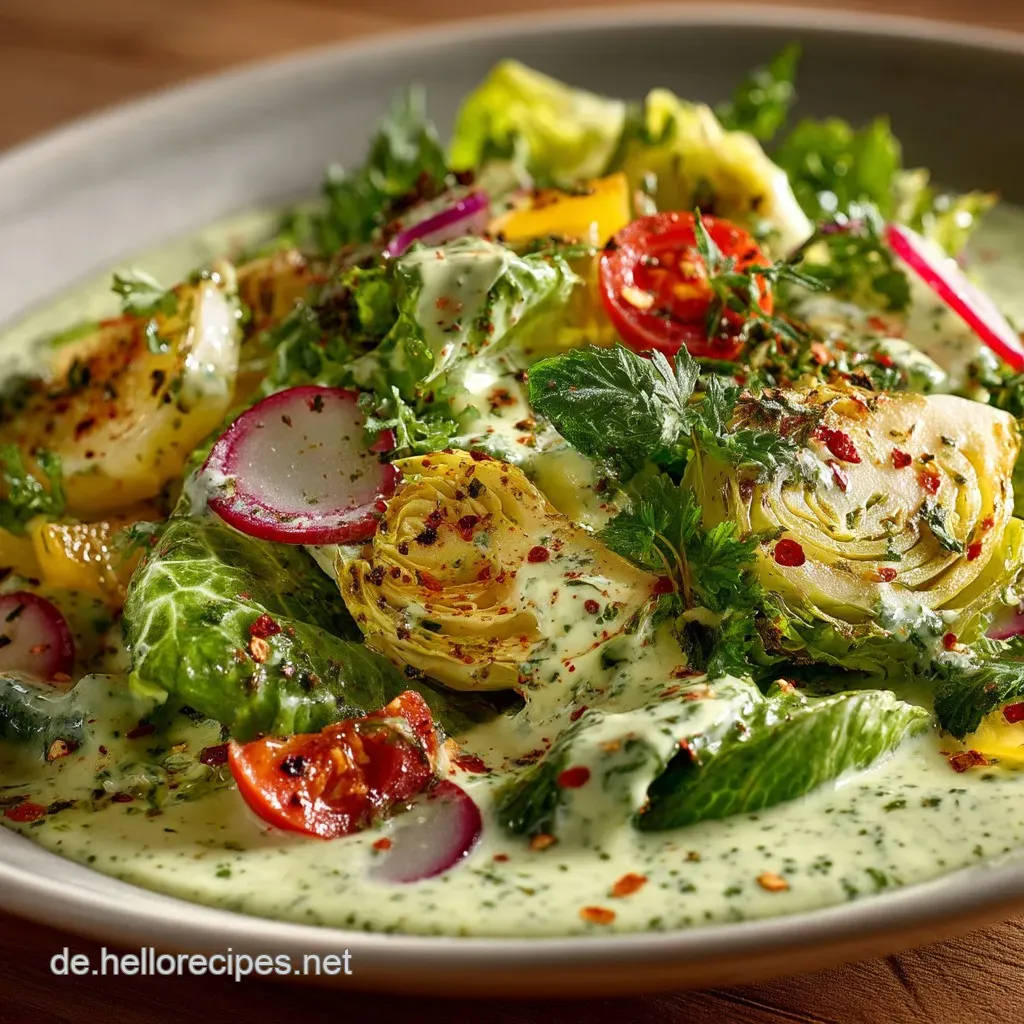 Der Grüner Göttinnen Salat ist weit mehr als nur ein viraler Küchentrend; er ist die Definition von maximaler Frische und Kräuterkompetenz. Was dieses Gericht so unwiderstehlich macht, ist die perfekte Balance zwischen dem knackigen Römersalat und einem unglaublich cremigen, tiefgrünen Dressing, das vor intensiven Kräuteraromen nur so strotzt. Die Textur ist der Schlüssel: Wir sprechen hier nicht von einem wässrigen Dressing, sondern von einer reichhaltigen Hülle, die jedes Blatt ummantelt und den Salat in eine vollwertige, sättigende Mahlzeit verwandelt. Die intensive, lebendige Farbe des Dressings gab ihm einst den Namen, der sich bis heute hält: die "Green Goddess Definition".
