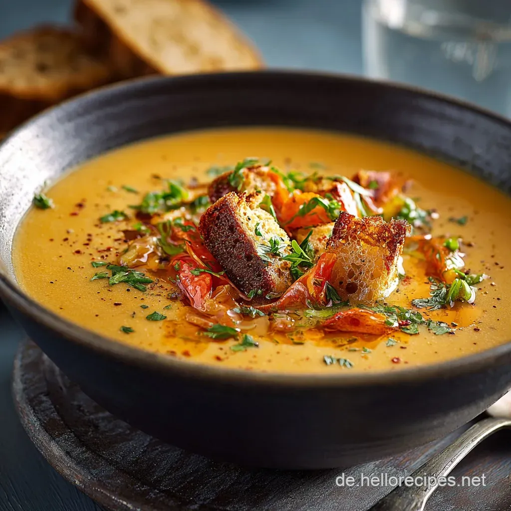 Du kannst die Scheiben auch kurz toasten oder in etwas Butter in der Pfanne anrösten, bevor du sie auf die Suppe legst.