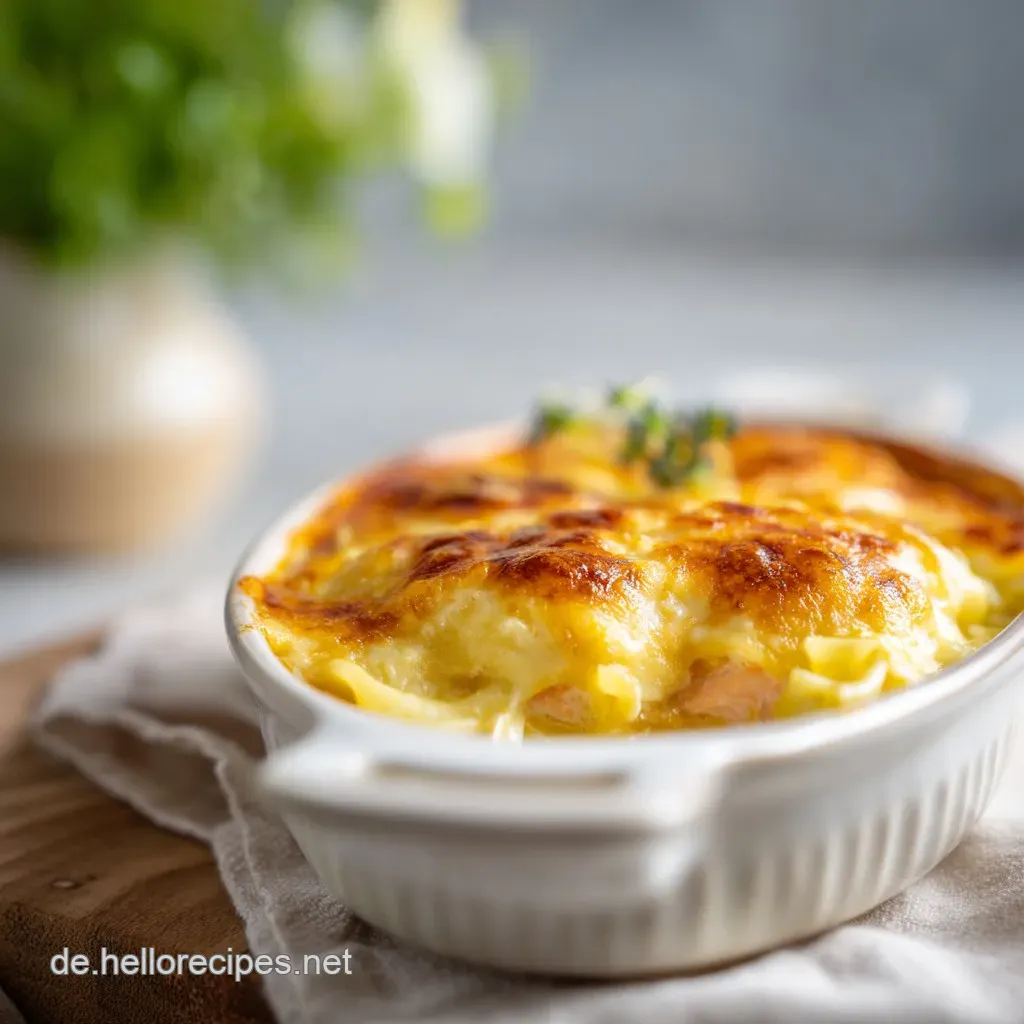 - Der ultimative Seelenwärmer: Herzhaftes Lachs-Sahne Gratin mit frischem Dill und Bandnudeln