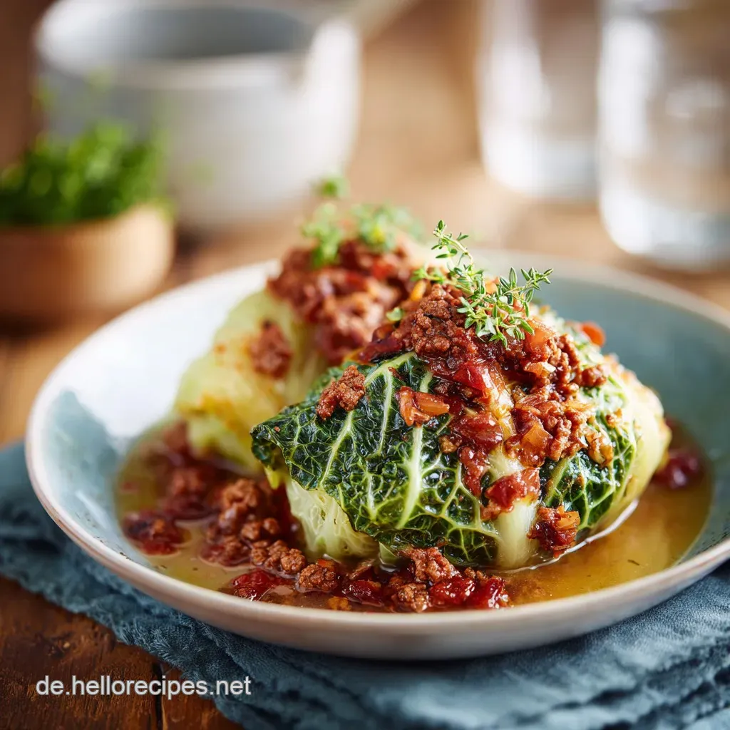 Der traditionelle Schichtkohl oder Kohlrouladen Rezepte beinhalten oft dicke Soßen oder werden mit Kartoffeln serviert. Das lassen wir heute einfach weg. Unser Fokus liegt stattdessen darauf, die natürlichen Aromen des Kohls durch langes Schmoren zu intensivieren.