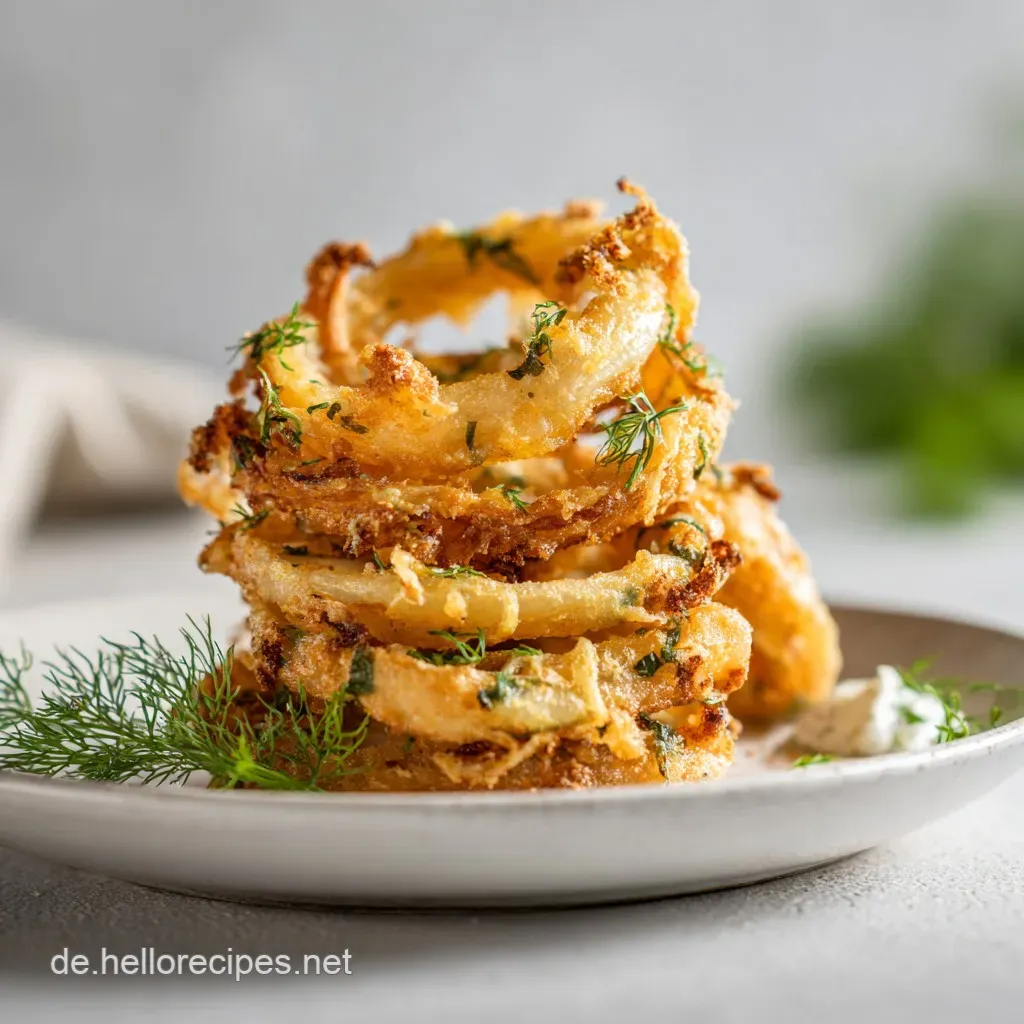 - Joghurt Kräuter-Dip: Veganer Joghurt (Soja oder Kokos) mit frischen Kräutern (Schnittlauch, Petersilie) und Knoblauch. Perfekt für diese Vegane Zwiebelringe .