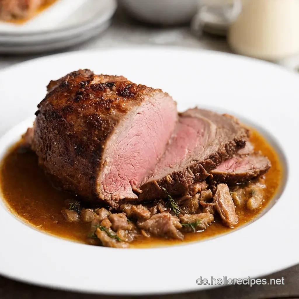- Servieren: Rinderbraten in Scheiben schneiden und mit der Soße servieren.