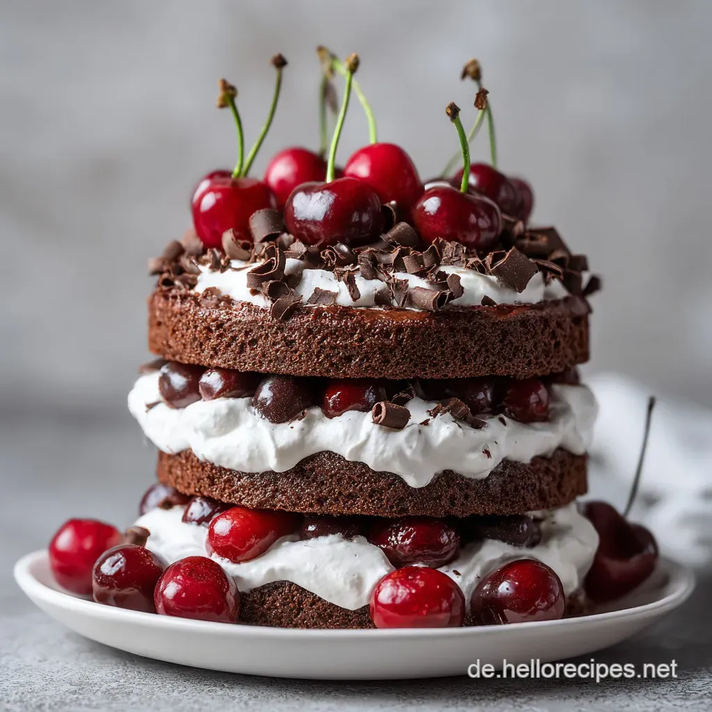 Entscheidungshilfe für euren Twist: Wenn ihr es luxuriöser wollt → Fügt eine Schicht Zartbitterschokolade Ganache zwischen Biskuit und Sahne ein. Wenn ihr es fruchtiger wollt → Ersetzt die Sauerkirschen durch eine Mischung aus Kirschen und Himbeeren.