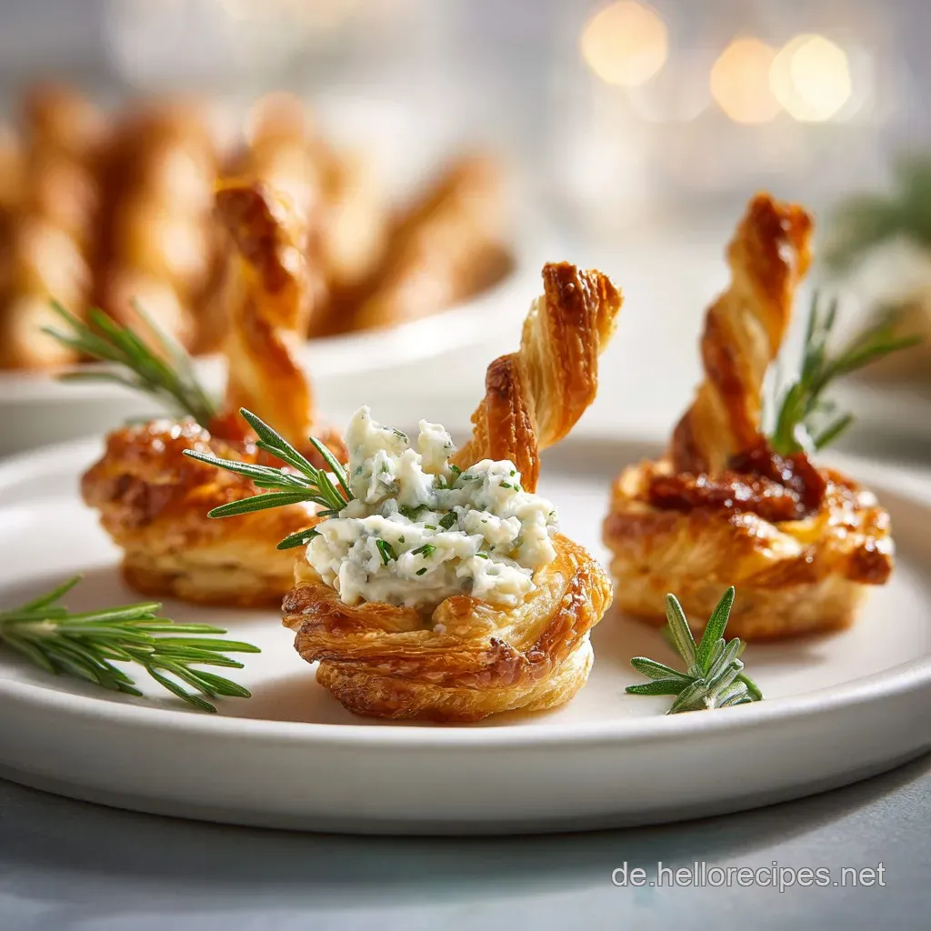 - Getränke: Ein trockener Riesling Sekt oder ein herber Gin Tonic schneiden perfekt durch das Fett des Blätterteigs.