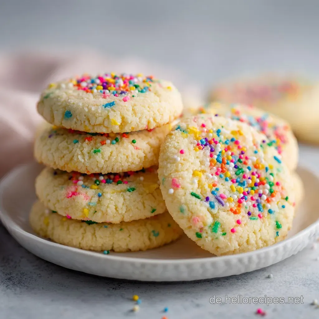 Das erste, was du siehst, sind die glitzernden Zuckerkristalle auf der Oberfläche, die wie winzige Prismen das Licht reflektieren. Diese Kekse sind kein gewöhnliches Gebäck; sie haben diesen spezifischen, fast schon unrealistischen Glanz, der sofort verrät, dass sie beim ersten Biss nachgeben werden, ohne zu zerbröseln.