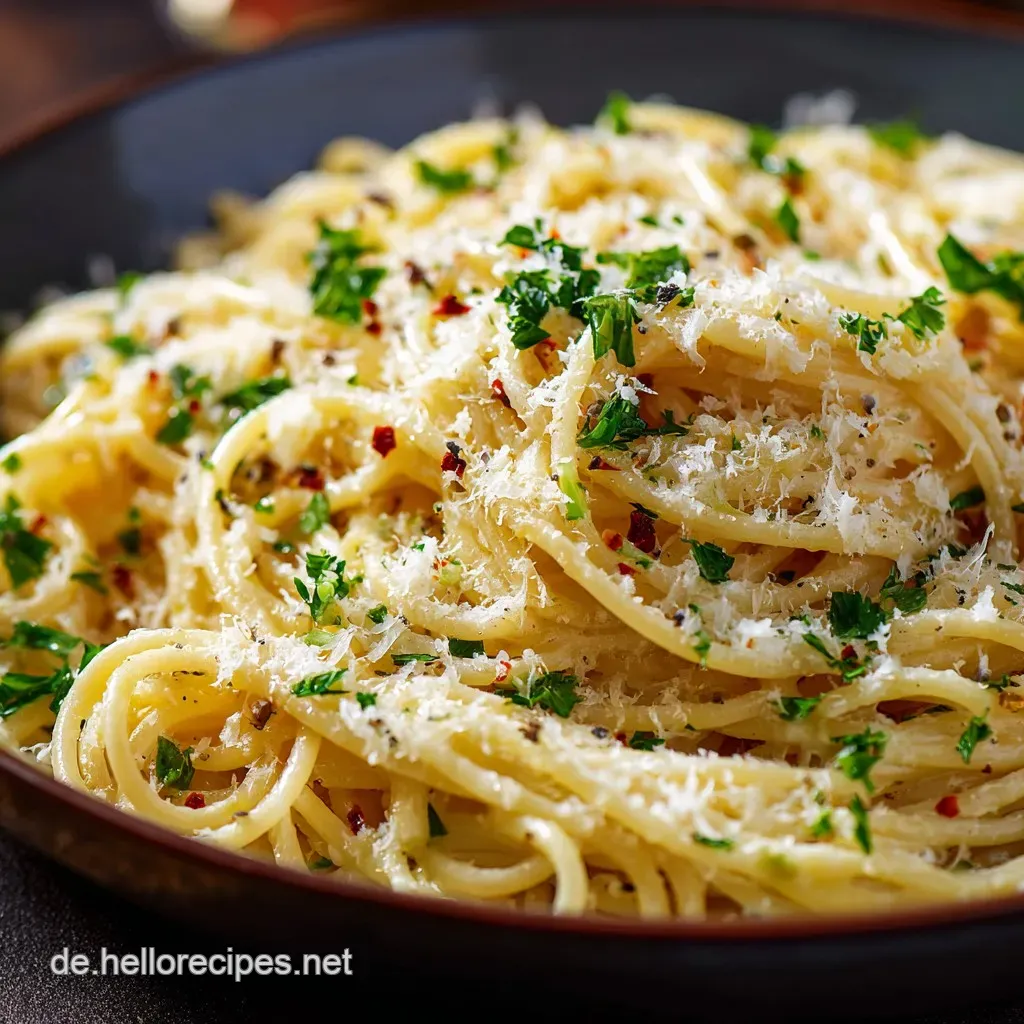 Diese Technik verwandelt das lose Öl in eine glänzende, sämige Soße, die jede Nudel umhüllt. Die Kombination aus Knoblauch, Öl und Parmesan schafft eine überraschend vielschichtige Umami Bombe.