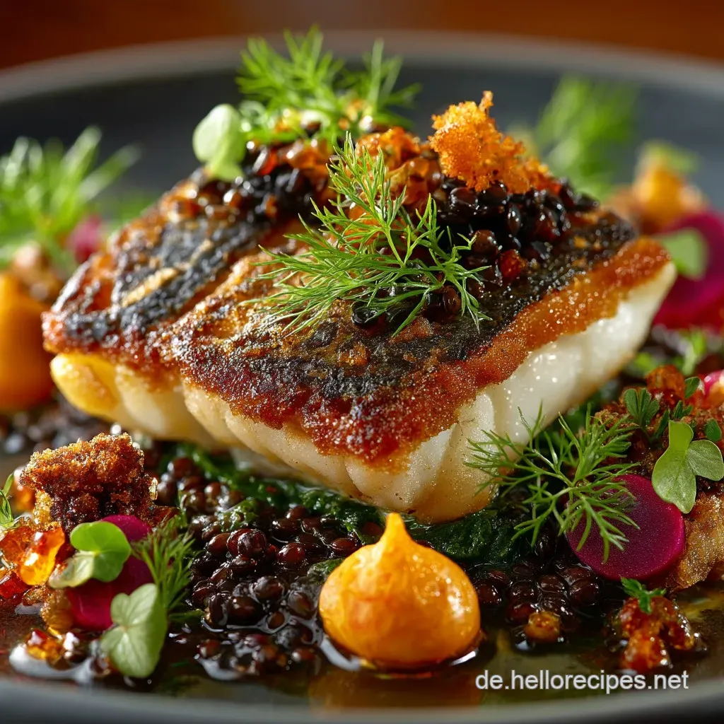 Die Wahl der Beluga-Linsen ist bewusst getroffen. Anders als rote oder braune Linsen behalten diese kleinen, schwarzen Körner beim Kochen ihren Biss – sie bleiben "al dente" und bieten einen nussigen Unterton. Diese Bissfestigkeit bildet den perfekten Kontrapunkt zur butterweichen, innen saftigen Textur des Zanderfilets. Das Ziel ist eine Symphonie aus Knusprigkeit (der Fischhaut!) und zartem Schmelz (dem Fischfleisch und der Sauce).